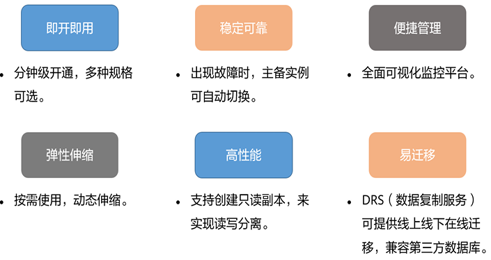 - RDS For MySQL架构成熟稳定,支持流行应用程序,适用于多领域多行业;支持各种WEB应用,成本低,中小企业首选。