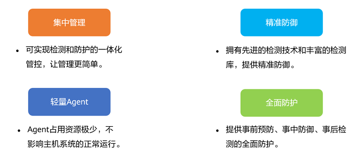 - 管理控制台:可视化的管理平台,便于用户集中下发配置信息,查看在同一区域内主机的防护状态和检测结果。