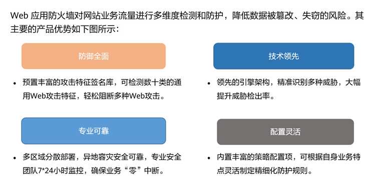 - 常规防护场景::帮助用户防护常见的Web安全问题,比如命令注入、敏感文件访问等高危攻击。